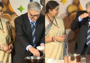 बिल गेट्स का स्मृति ईरानी संग खिचड़ी में तड़का लगाते वीडियो वायरल