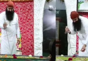 पैरोल पर जेल से बाहर आने की खुशी में राम रहीम ने तलवार से काटा केक