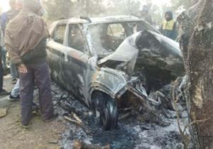 पेड़ से टकरा गई अनियंत्रित कार, आग में झुलसने से हुई 3 की मौत