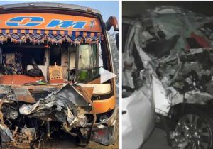 गुजरात के नवसारी में बड़ा हादसा, फॉर्च्यूनर कार और लग्जरी बस की भीषण टक्कर में आठ लोगों की मौत