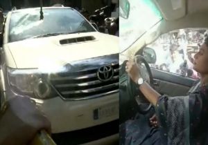 तेलंगाना:कार में बैठी रहीं आंध्र CM की बहन, पुलिस क्रेन से खींच ले गईं