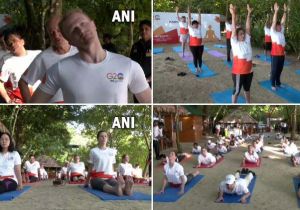 कई राजदूतों और संगठन प्रमुखों ने स्वराज द्वीप में काला पत्थर बीच पर किया योग