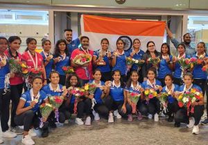 भारतीय जूनियर महिला हॉकी टीम का बेंगलुरू हवाई अड्डे पर हुआ जोरदार स्वागत