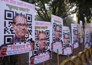 कांग्रेस ने 'शिवराज पे' के क्यूआर कोड के पोस्टर बनाकर लगाए