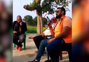 भगवा टीका और भगवा कपड़े में हिस्ट्रीशीटर सरेआम शख्स को दे रहा धमकी