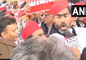 शिवपाल यादव के नेतृत्व में सपा विधायकों का विरोध प्रदर्शन, मार्शल्स के साथ नोंकझोंक