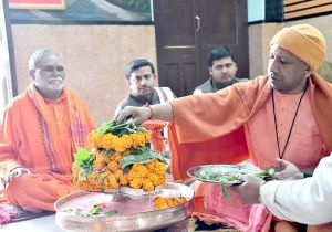 जनकल्याण के लिए सीएम योगी ने गोरखनाथ मंदिर में किया रुद्राभिषेक