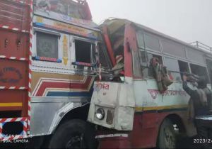 कोहरे के कारण दिल्ली से आई रोडवेज बस और ट्रक में टक्कर, 30 घायल, 14गंभीर