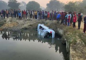 लखनऊ में बड़ा हादसा, तेज रफ्तार सरकारी नंबर की कार नाले में गिरी, 4 दोस्तों की मौत