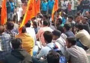 सीतापुर में हिन्दू शेर सेना ने सड़क पर पढ़ी हनुमान चालीसा, मंदिर के पास मांस-मंदिरा की दुकानों का विरोध