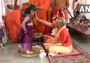 Navratri 2022: 'नवमी' पर सीएम योगी आदित्यनाथ ने गोरखपुर में किया कन्या पूजन, मातृशक्ति के पांव पखारे
