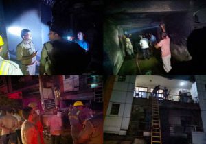 पार्किंग में भीषण आग, एक महिला की मौत, 16 वाहन जले