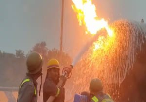 लखनऊ-अयोध्या हाईवे पर गैस टैंकर मे लगी भीषण आग, मची अफरातफरी
