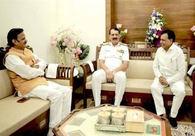 उप मुख्यमंत्री देवड़ा से नौसेना प्रमुख एडमिरल दिनेश त्रिपाठी ने शिष्टाचार भेंट की