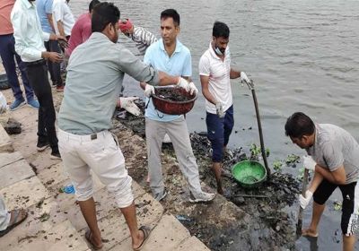 जल चौपाल कर ग्रामीणों को नदी के आसपास साफ सफाई के महत्व के बारे में जानकारी दी जा रही