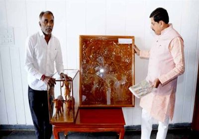 मुख्यमंत्री डॉ. यादव से काष्ठ मूर्ति कलाकार विश्वकर्मा ने की सौजन्य भेंट