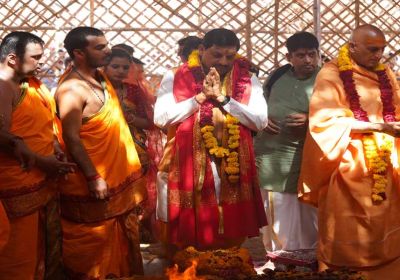 मुख्यमंत्री ने 'एकात्म धाम' पुस्तक का विमोचन भी किया और जूना पीठाधीश्वर स्वामी अवधेशानंदजी से आशीर्वाद प्राप्त किया