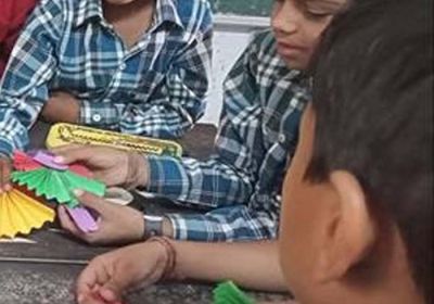 प्राचार्य ने बताए विद्यार्थियों को मोबाइल के दुष्प्रभाव, अखबार की रद्दी से थैलियां और मेंहदी के कोन