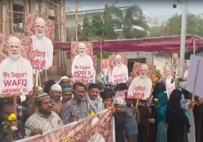 संसद में वक्फ बिल पेश किए जाने को लेकर मुस्लिम समाज में खासा उत्साह, मुस्लिम महिलाएं हाथ में 'शुक्रिया मोदीजी' के पोस्टर थामे सड़क पर उतरीं