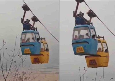 मां विजयासन देवी मंदिर मंदिर में रोपवे के ऊपर बैठे दिखे लोग, संचालक बोला- रूटीन चेकिंग कर रहे थे कर्मचारी