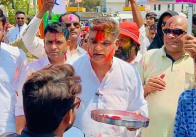 भोपाल में रंग पंचमी पर कांग्रेस नेताओं ने रंग पंचमी का नाम बदलकर 'कर्ज पंचमी' रख दिया, मोहन यादव सरकार को घेरा