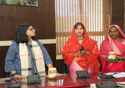 स्व-सहायता समूह की महिलाओं ने कलेक्ट्रेट पहुँचकर कलेक्टर को भेंट किया शहद