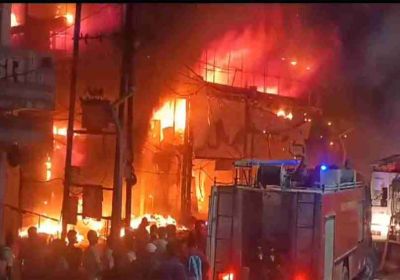 मध्य प्रदेश के रीवा में एलजी कंपनी के शोरूम लगी भीषण आग, कई किलोमीटर दूर तक उठी लपटें