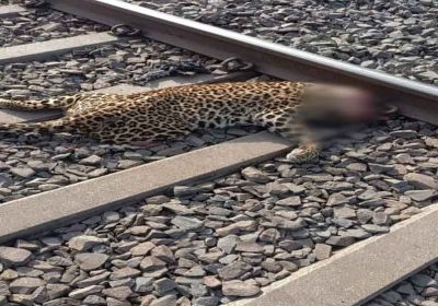 ट्रेन की चपेट में आने से तेंदुए की मौत, तेदुएं के शव को पोस्टमॉर्टम के लिए बाघदेव वन चौकी लाया गया