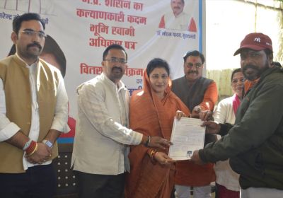 मंत्री श्रीमती गौर ने खजूरी कला बरखेड़ा पठानी आदि बस्तियों के 61 रहवासियों को भूमि स्वामी अधिकार-पत्र वितरित किये