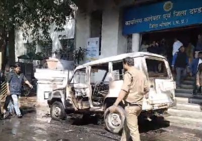 भोपाल के कलेक्टोरेट में गाड़ी में आग, प्रॉपर्टी विवाद की शिकायत लेकर पहुंचा था परिवार