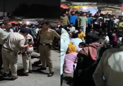 भोपाल में गणपति जुलूस पर हिंसा, जनता ने पुलिस थाने के बाहर किया प्रदर्शन