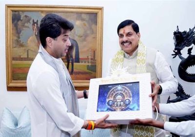 मुख्यमंत्री डॉ. यादव ने केंद्रीय मंत्री सिंधिया से मुलाक़ात कर भेंट की वैदिक घड़ी