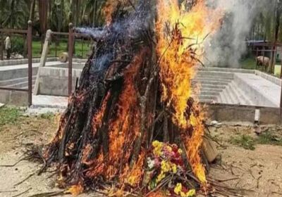 महिला की संदिग्ध परिस्थिति में हुई मौत के बाद पुलिस ने जलती चिता से महिला का शव किया बरामद