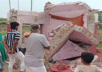 पटना-राजगीर टूरिस्ट वे पर अनियंत्रित हाइवा ने मंदिर को ढहाया, एक व्यक्ति मलबे में दबा