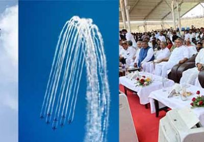 एयरफोर्स के नौ हॉक-132 जेट विमानों ने पटना के नीले आकाश को अपनी लहरदार फॉर्मेशन, लूप्स और धमाकेदार डाइव्स से सजाया