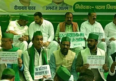 विधानसभा परिसर में आरक्षण की मांग को लेकर प्रदर्शन, सड़क पर तेजस्वी यादव का धरना