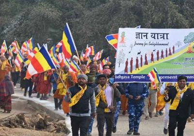 बिहार-गया में महाबोधि मंदिर तक निकली ज्ञान यात्रा में देश-विदेश के बौद्ध श्रद्धालु शामिल