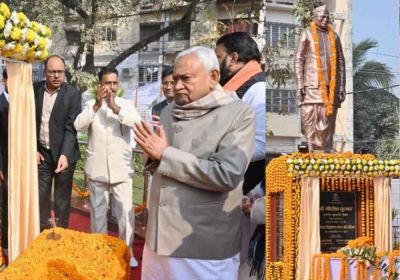 बिहार-मुख्यमंत्री नीतीष कुमार ने त्रिपुरा के पूर्व राज्यपाल सिद्धेष्वर प्रसाद की प्रतिमा का किया अनावरण