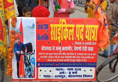 प्रकाश कुमार गुप्ता ने अपने 8 वर्षीय बेटे यशराज के साथ साइकिल से वैष्णो देवी की यात्रा शुरू की, बनी चर्चा का विषय