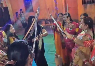तलवार लिए नवरात्र डांस करती महिलाएं, सोशल मीडिया पर मचा धमाल