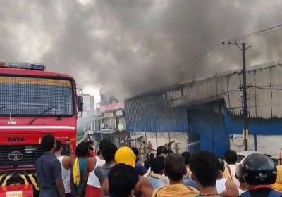 सोलर हाउस गोदाम में लगी भयंकर आग से अफरा-तफरी, दमकल की टीमें मौके पर