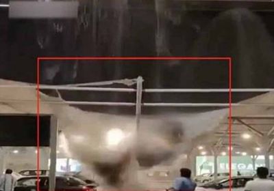 दिल्ली हवाई अड्डे पर तेज बारिश और आंधी के कारण टर्मिनल के बाहर छत का एक हिस्सा यानी ओवरहैंग नीचे गिर गया