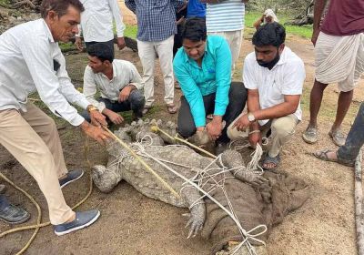 लकड़ी समझ बैठे थे ग्रामीण, हिला तो निकला 10 फीट लंबा मगरमच्छ!
