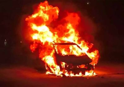 ससुराल घूमने जा रहा था परिवार- दौड़ती कार बनी आग का गोला, चंद मिनटो में खाक, कूदकर बचाई परिवार ने जान