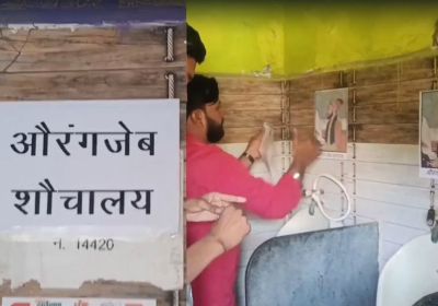 धार में सार्वजनिक शौचालय पर औरंगजेब शौचालय का पोस्टर चस्पा किया