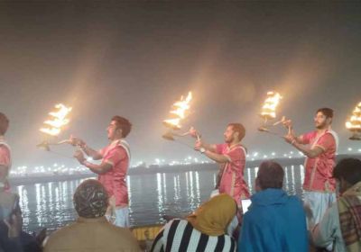 प्रतिदिन शाम सात बजे गंगा तट पर नर्मदा, शिप्रा सहित सभी पवित्र नदियों का गान हो रहा है, किख रहा है मध्य प्रदेश मंडपम्