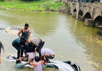 हाईवे पर दिल दहला देने वाला हादसा, नदी में गिरी कार; दो मृत, दो घायल इंदौर रेफर