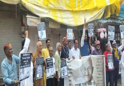 वामपंथी समाजवादी दलों ने गांधी प्रतिमा पर दिया धरना, सराफा थाने पर किया प्रदर्शन