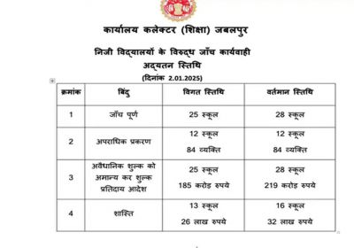 जबलपुर में मनमानी फीस वसूलने वाले तीन स्कूल लौटाएं 33.78 करोड़, प्रशासन ने लगाया दो-दो लाख का जुर्माना