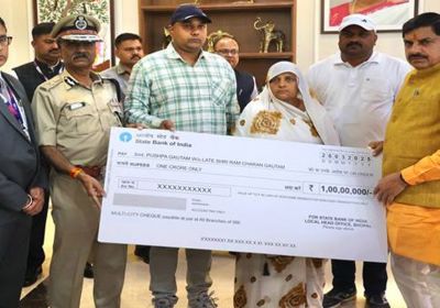 मुख्यमंत्री ने शहीद पुलिस उप निरीक्षक के परिवार को एक करोड़ रूपये का चेक प्रदान किया